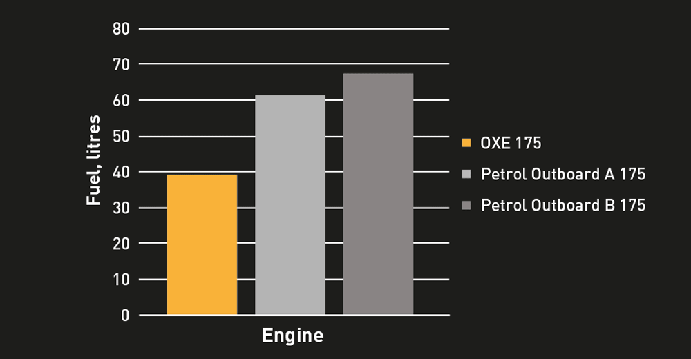 The OXE 175 is the ultimate work tool for planning vessels that also needs to carry heavy loads for longer periods of time. The unit allows for superior range with fuel consumption up to 37L/hrs. (9.8 US